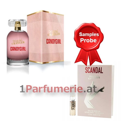Startseite » Damendüfte » CHATLER » Chatler Candygirl - Eau de Parfum 100 ml, Probe Jean Paul Gaultier Scandal