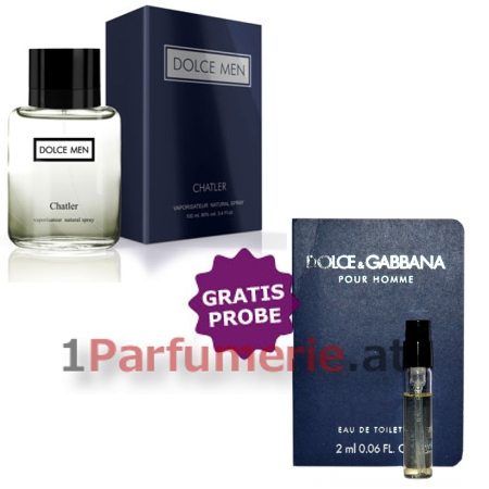 Startseite » Herrendüfte » CHATLER » Chatler Dolce Men - Eau de Parfum 100 ml, Probe Dolce Gabbana Homme