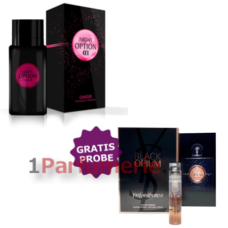 Startseite » Damendüfte » CHATLER » Chatler Option Night - Eau de Parfum 100 ml, Probe Yves Saint Laurent Opium Black
