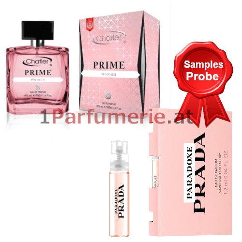 Chatler Prime Woman - Eau de Parfum fur Damen 100 ml, Probe Prada Paradoxe EDP 1,2 mlChatler Prime Woman - Eau de Parfum fur Damen 100 ml, Probe Prada Paradoxe EDP 1,2 mlChatler Prime Woman - Eau de Parfum fur Damen 100 ml, Probe Prada Paradoxe EDP 1,2 ml