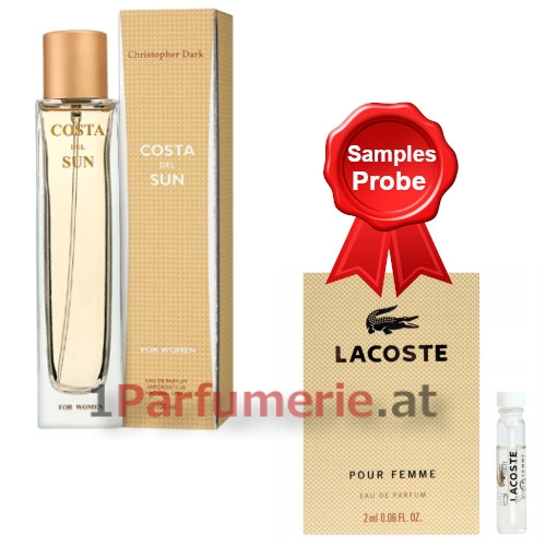 Startseite » Damendüfte » CHRISTOPHER DARK » Christopher Dark Costa Del Sun Brown - Eau de Parfum 100 ml, Probe Lacoste Pour Femme