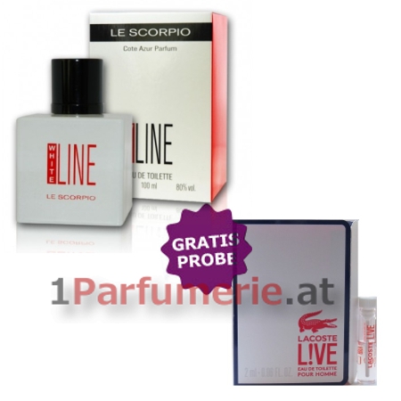 Startseite » Herrendüfte » COTE AZUR » Cote Azur Le Scorpio White Line - Eau de Parfum 100 ml, Probe Lacoste Live