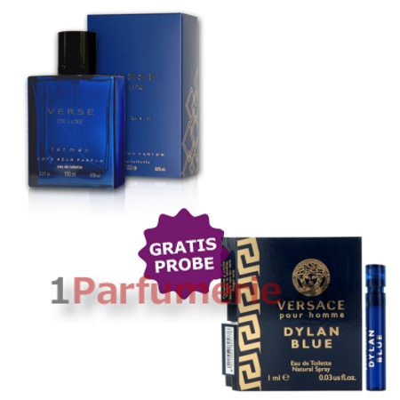 Startseite » Herrendüfte » COTE AZUR » Cote Azur Verse De Luxe Men - Eau de Parfum 100 ml, Probe Versace Dylan Blue Homme
