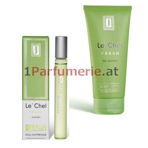 Entdecken Sie das JFenzi Le Chel Fresh Aktions-Set für Damen, bestehend aus einer parfümierten Körperlotion (200 ml) und einem Roll-On (10 ml). Ein Set, das nicht nur Ihre Sinne verwöhnt, sondern auch als Duftzwilling des unverkennbaren Chanel Chance Fraiche einen Hauch von Luxus und Eleganz verspricht. Treten Sie ein in die Welt von 1parfumerie.at, wo exklusive Düfte auf erstklassigen Service treffen.
