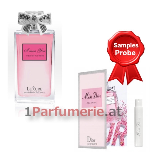 Startseite » Damendüfte » LUXURE » Luxure I Miss You Field of Flowers - Eau de Parfum 100 ml, Probe Miss Dior Rose N'Roses